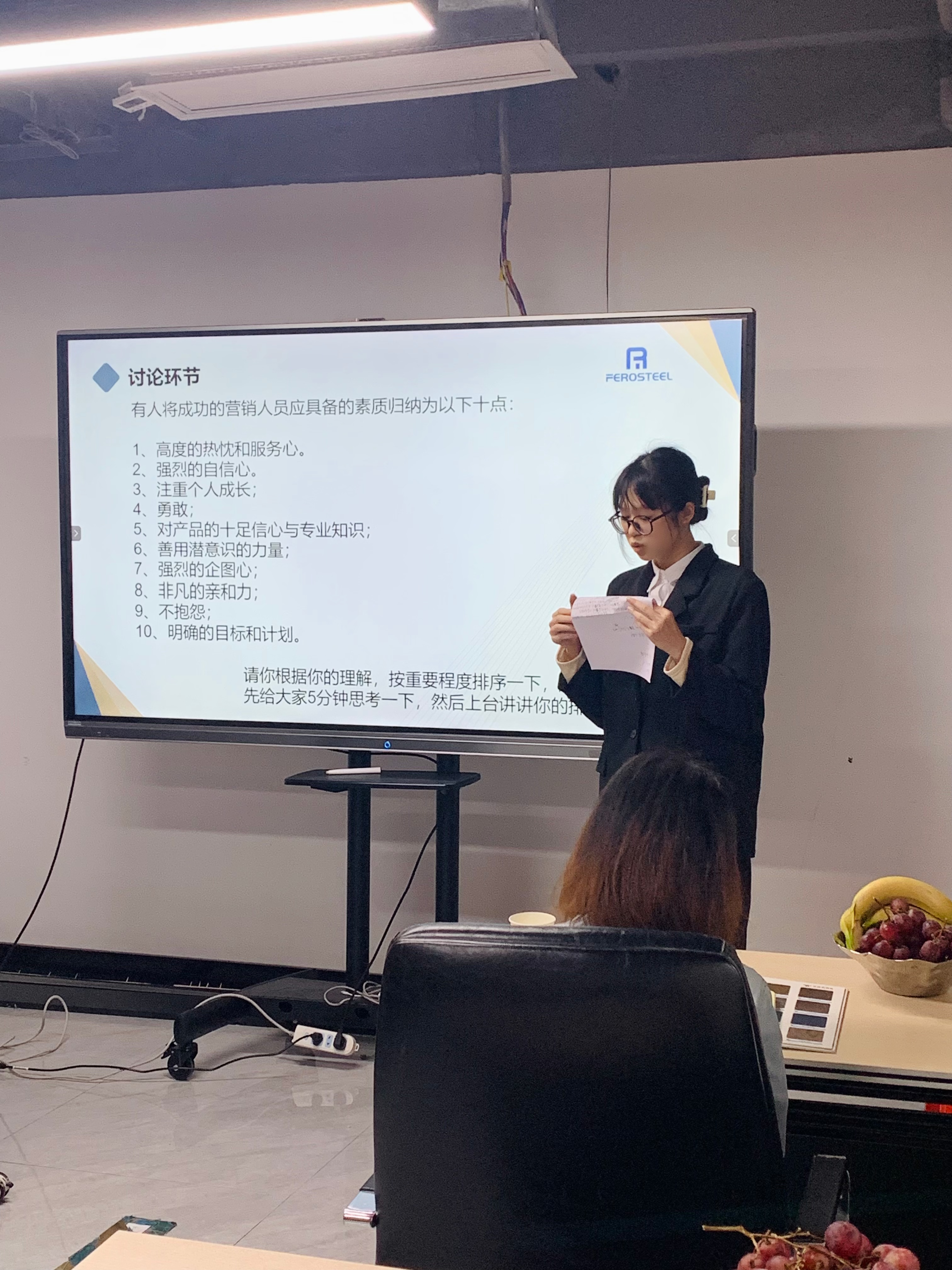 我們的業(yè)務(wù)員Lydia分享了她在非若特鋼業(yè)的成長(zhǎng)歷程,包括如何開單以及參加國外展會(huì)的寶貴經(jīng)歷。她的故事充滿了激情和挑戰(zhàn),展現(xiàn)了外貿(mào)業(yè)務(wù)員的責(zé)任和使命感。她的分享激勵(lì)了在場(chǎng)的每一位,讓我們更加期待在這個(gè)充滿機(jī)遇的領(lǐng)域中發(fā)光發(fā)熱。